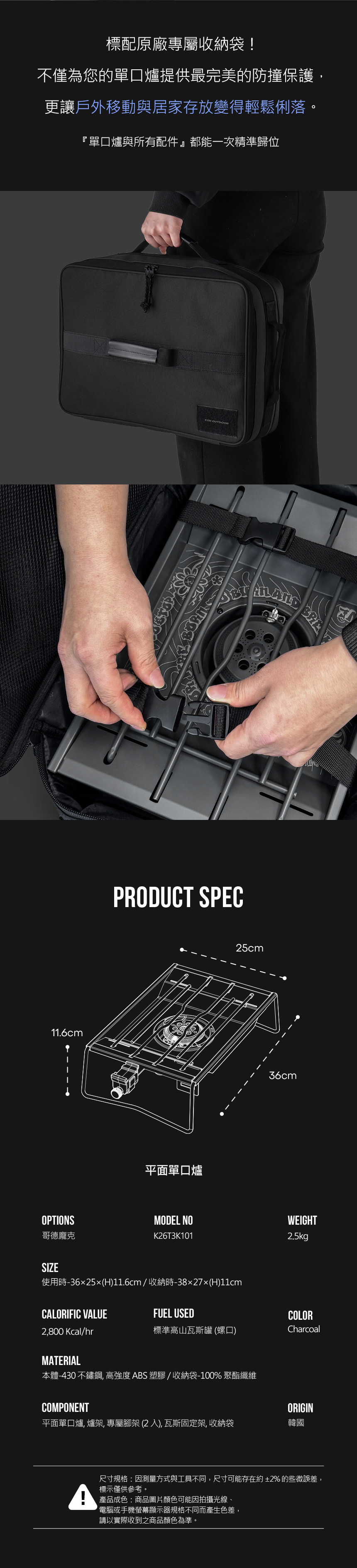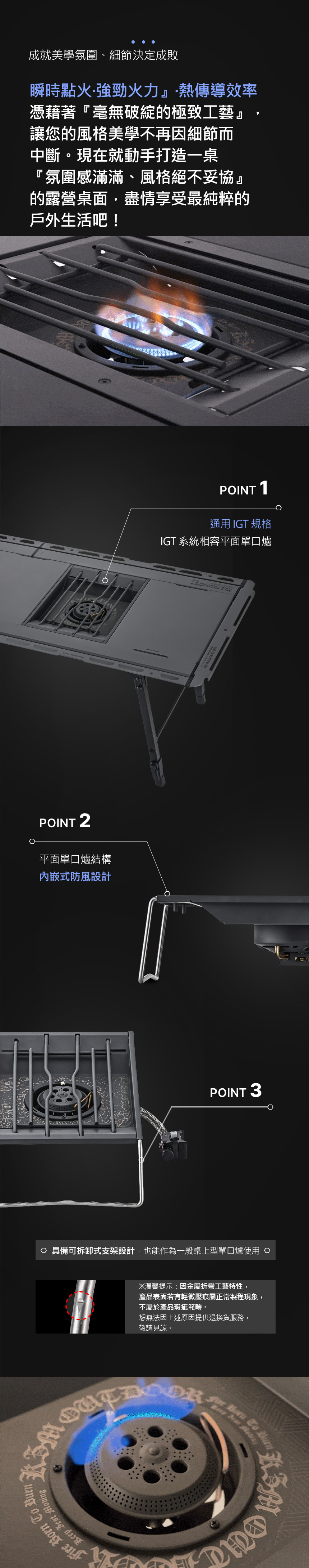 內附可拆卸式支架,也可作為一般桌上型單口爐使用