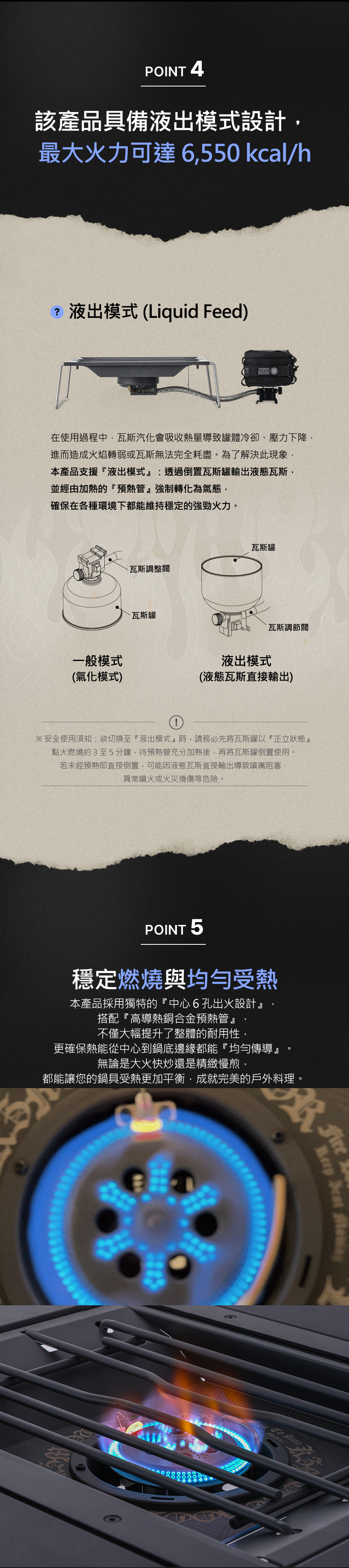 2800kcal/hr,液出模式最大火力可達6550kcal/h
