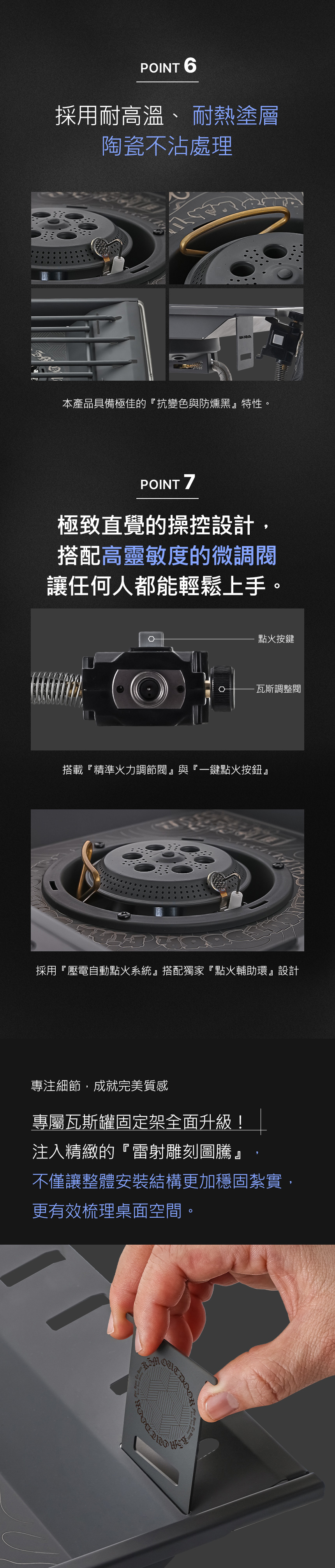 一鍵式點火,完美平整桌面,內嵌式防風設計