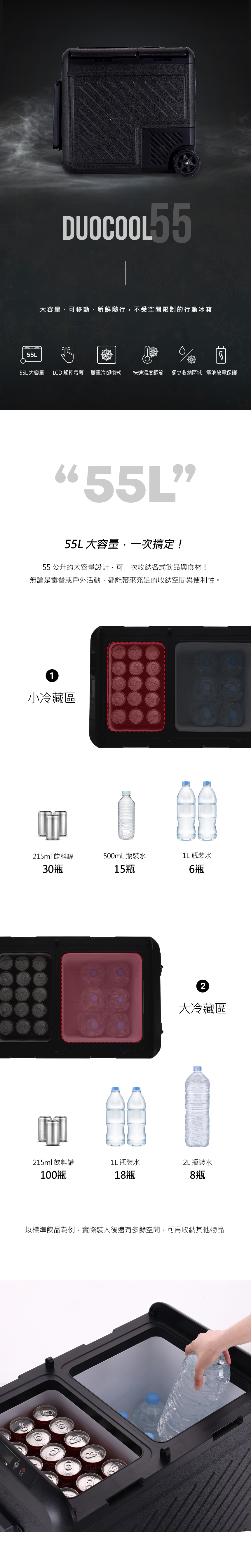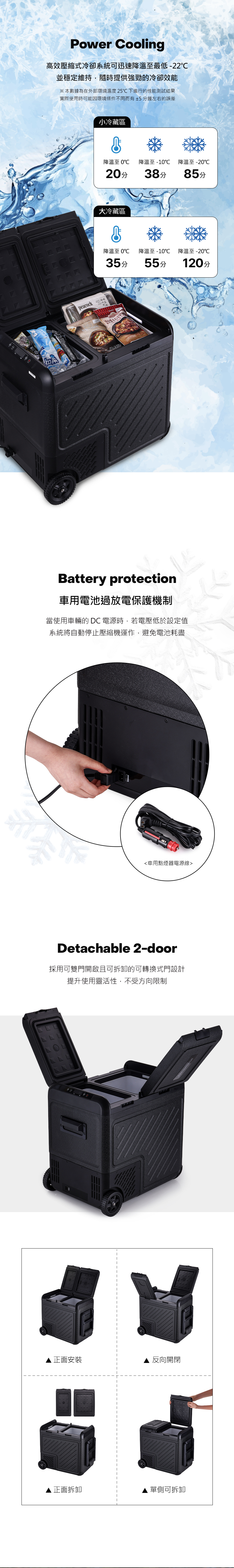 溫度範圍從-22℃到+20℃,可分區控制冷藏與冷凍