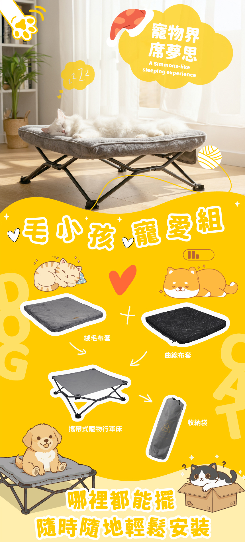 限量活動!毛小孩寵愛組 寵物行軍床+新品曲線布套